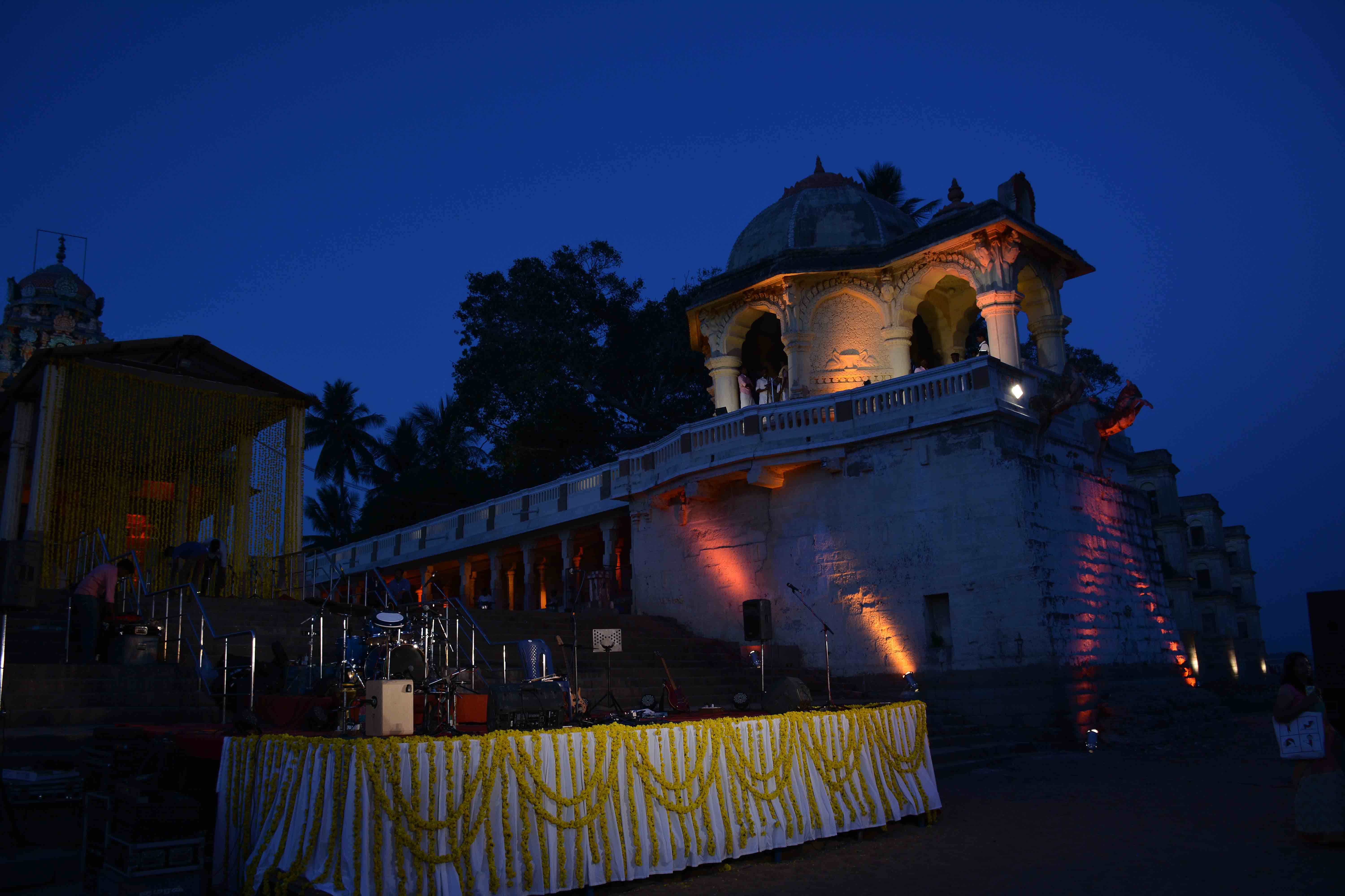 The Festival of Sacred Music (FOSM), a 3-day festival that takes place in Thiruvaiyaru celebrating the cultural importance of this holy ground, aims to restore the pride of the Music Centre that existed in the town at the time of Saint Thyagaraja. The festival intends to showcase true and pure forms of music, with the goal of bringing something new to the local art and music landscape of Thiruvaiyaru. It features stand-out performances by artists who are the true torchbearers of their respective fields, carrying forward the tradition of music.